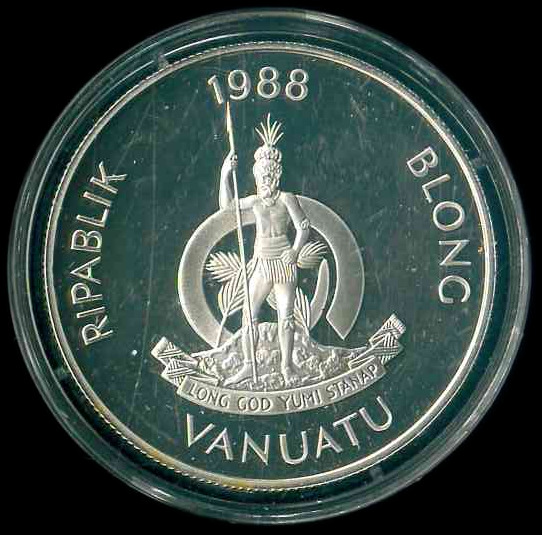 1988 萬那社銀幣 50 Vatu (1988 夏季奧運會 0.925) 品相如圖 編號:NIL