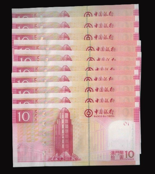 2008 澳門中國銀行 10 Patacas UNC 編號:ZA173851-60(十連號,頂級雪白)