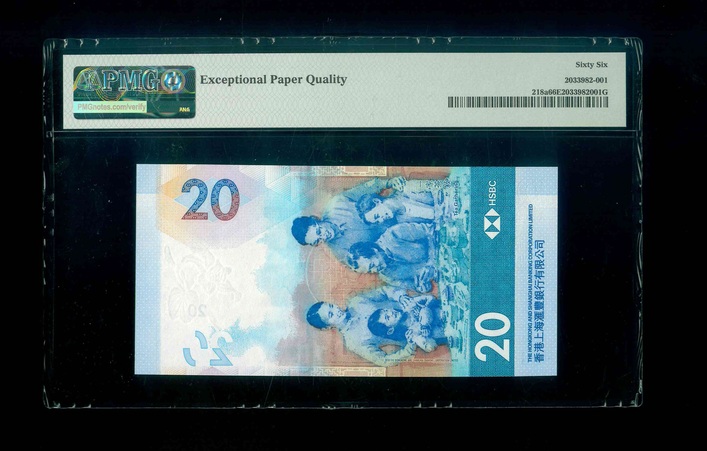 2018 香港上海滙豐銀行 $20 PMG 66 EPQ 編號:DU896968(旋轉號,頂級雪白)