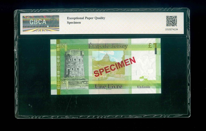 2010-18ND 澤西島 £1 GBCA 66 EPQ 編號:CD000000(樣鈔,頂級雪白)