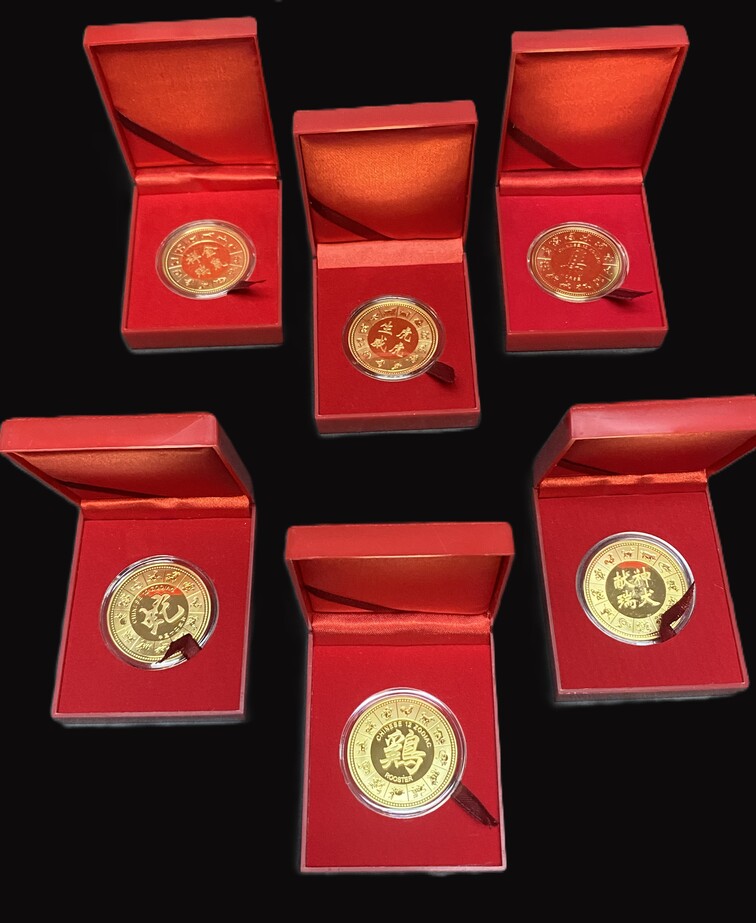 2013-2022 中國12生肖(鼠,狗,蛇,雞,虎,馬)鍍金紀念章 品相如圖 編號:NIL(共6枚,盒)