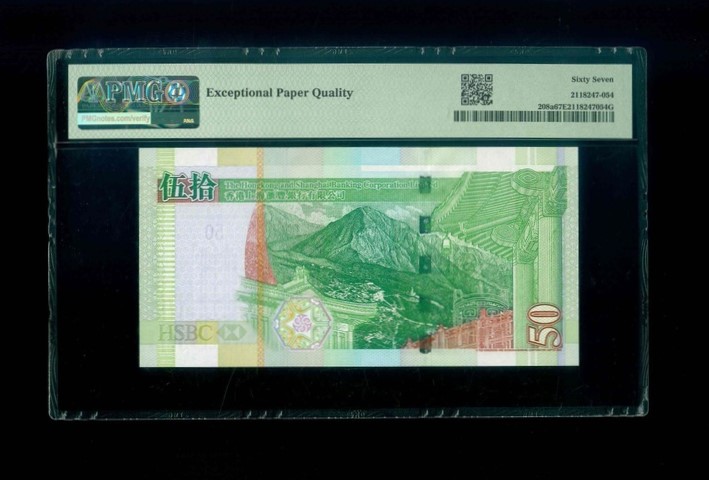 2003 香港上海滙豐銀行 $50 PMG 67 EPQ 編號:AA809864(頭版系列,頂級雪白)