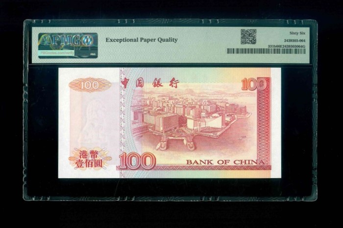 1996 中國銀行 $100 PMG 66 EPQ 編號:BT277788(頂級雪白)