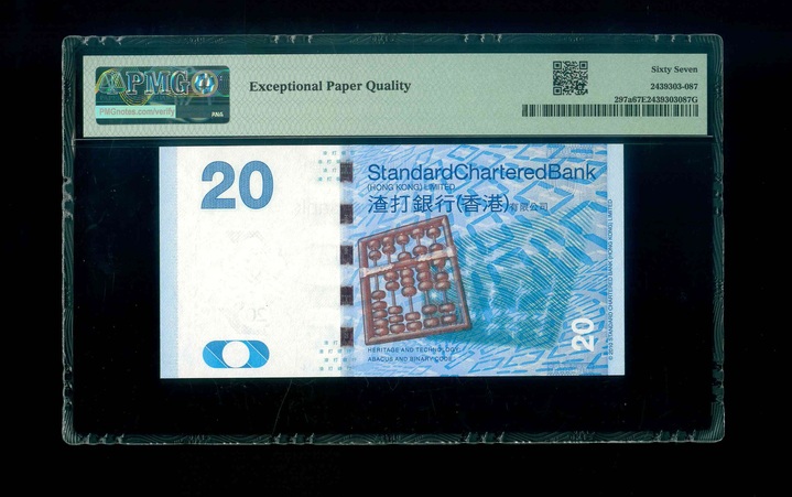 2010 香港渣打銀行 $20 PMG 67 EPQ 編號:AA024328(頭版系列,頂級雪白)