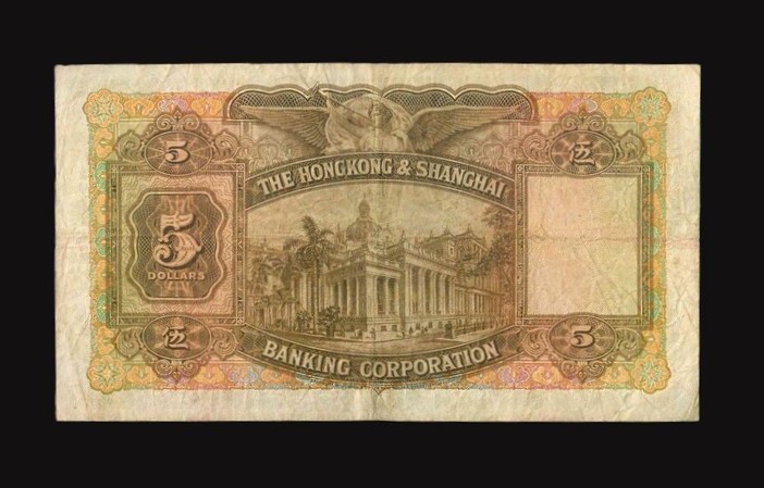 1954 香港上海滙豐銀行 $5 VF 編號:D/H 340114