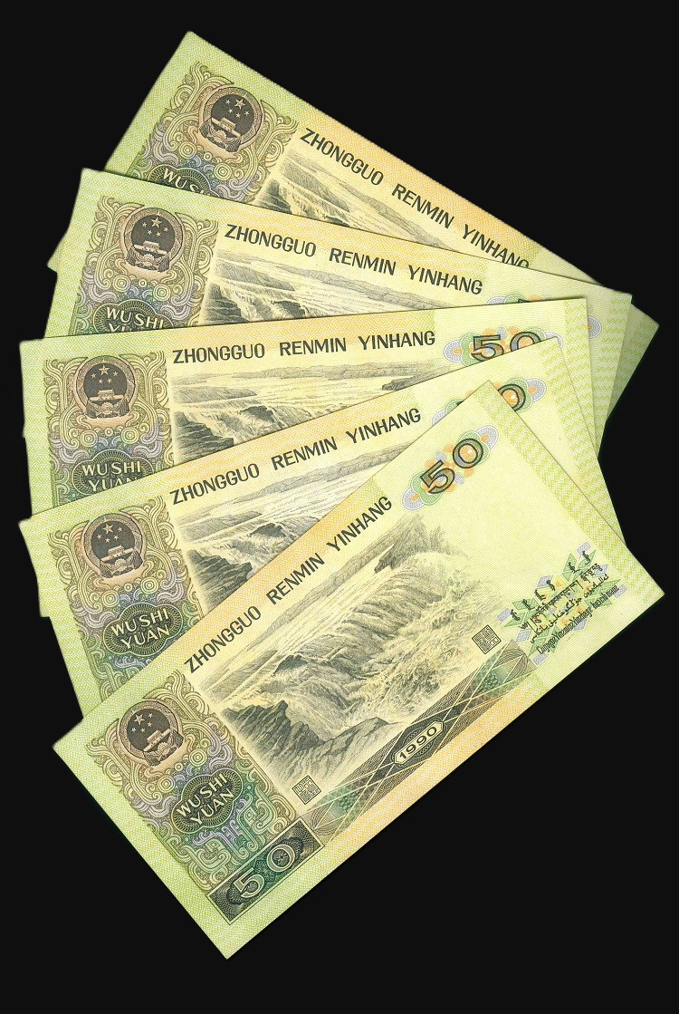 1990 中國人民銀行 $50 UNC 編號:XF77157652-56(共5張,連號)