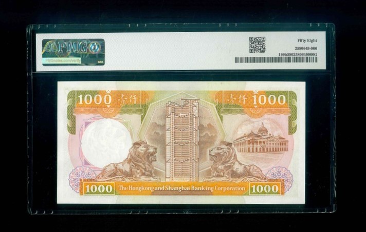 1989 香港上海滙豐銀行 $1000 PMG 58 編號:BV058885