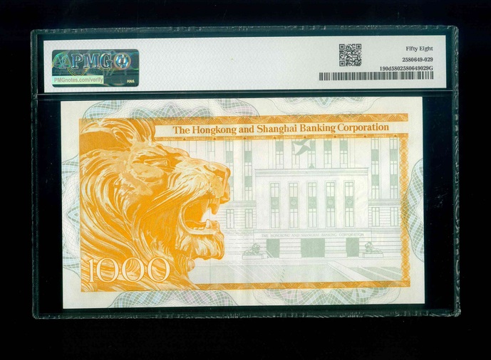 1981 香港上海滙豐銀行 $1000 PMG 58 編號:H510009