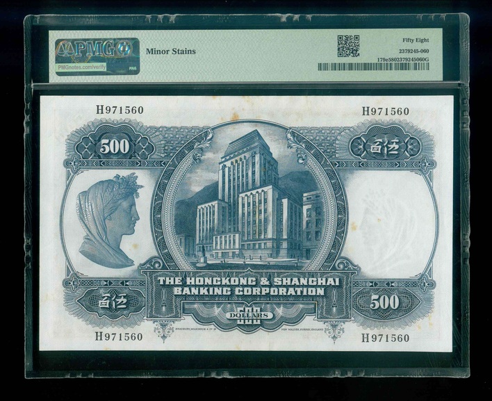 1968 香港上海滙豐銀行 $500 PMG 58 編號:H971560