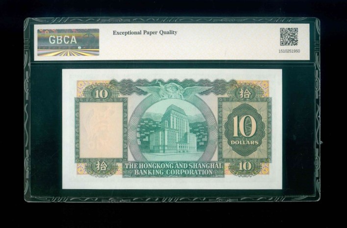 1977 香港上海滙豐銀行 $10 GBCA 66 EPQ 編號:NB 926059(頂級雪白)