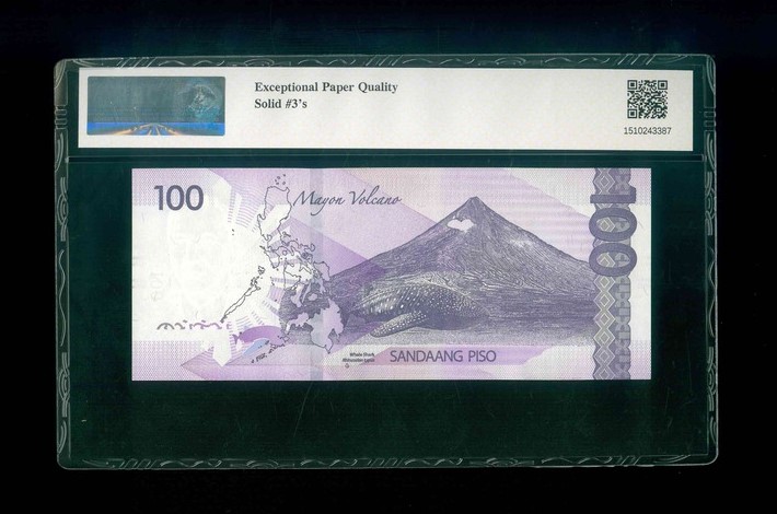 2023 菲律賓 100 Piso GBCA 66 EPQ 編號:HZ 333333(幸運全3,頂級雪白)