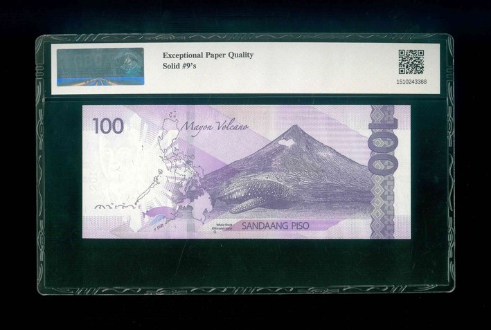 2023 菲律賓 100 Piso GBCA 66 EPQ 編號:FX 999999(幸運全9,頂級雪白)