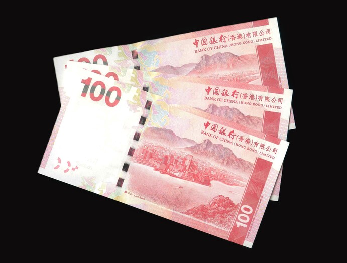 2010 香港中國銀行 $100 UNC 編號:AA721558-60(共3張,頭版連號,頂級雪白)
