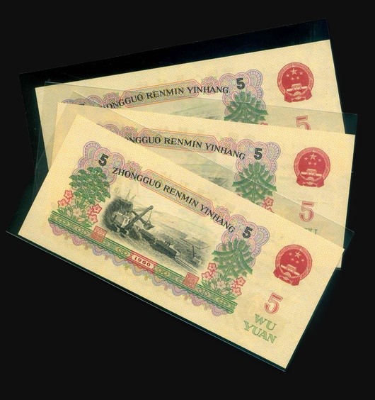 1960 中國人民銀行 $5 UNC 編號:IV VI IX 6676716-18(共3張,頂級雪白)