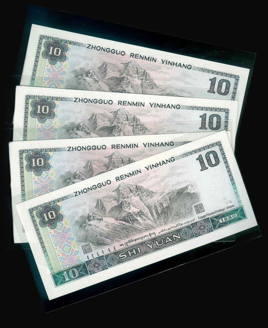 1980 中國人民銀行 $10 UNC 編號:JN10565828-31(共4張,補版連號)