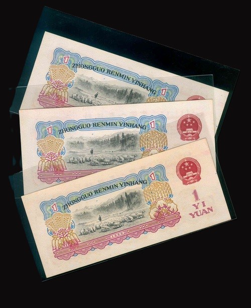 1960 中國人民銀行 $1 UNC 編號:VIII III 91959808-10(共3張,連號)
