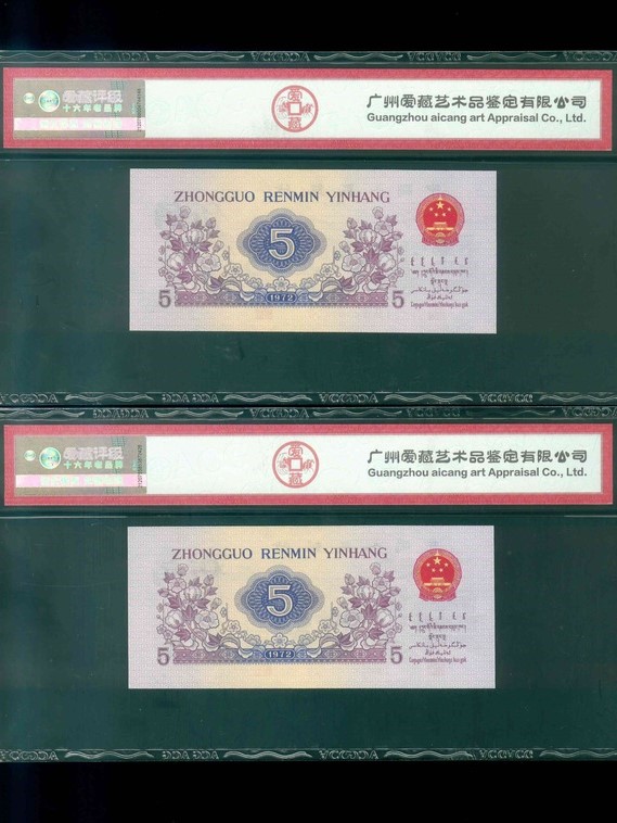 1972 中國人民銀行 伍角 ACG 67 EPQ 編號:I IX III 2101765-66(共2張,凸版連號)