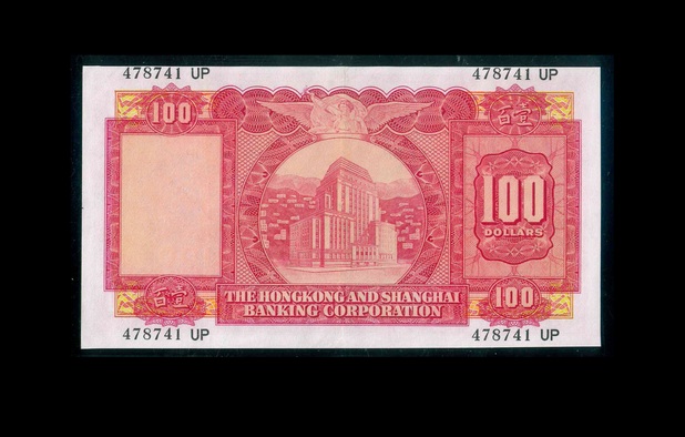 1966 香港上海滙豐銀行 $100 VF 編號:478741 UP(有裁切)