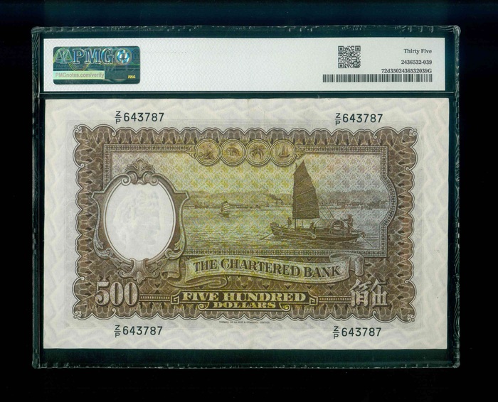 1977 香港渣打銀行 $500 PMG 35 編號:Z/P 643787