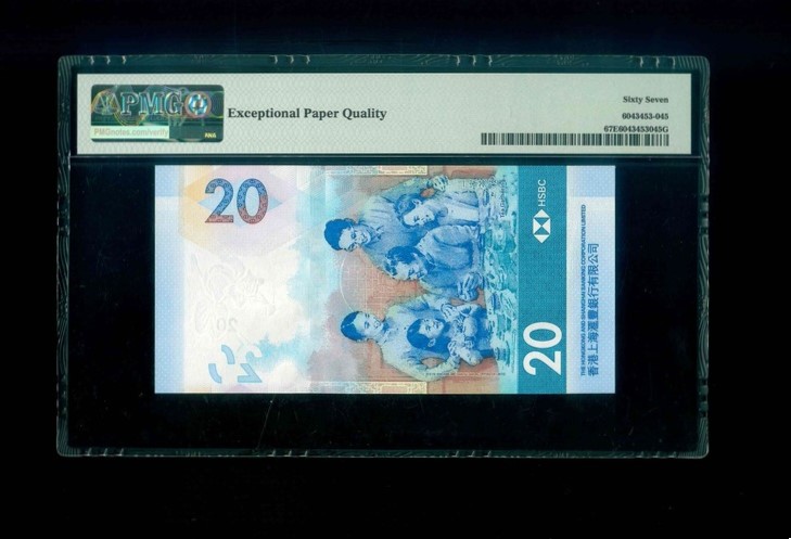 2018 香港上海滙豐銀行 $20 PMG 67 EPQ 編號:BY000077(細號,頂級雪白)
