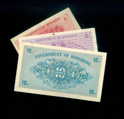 1937-40 香港政府 壹仙 伍仙 壹毫 AU-UNC 編號:228997…(共3張)